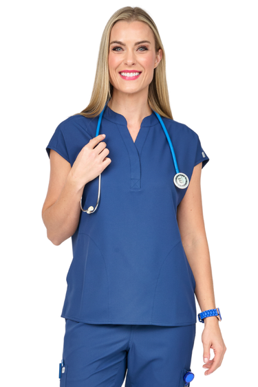 Elevate your professional wardrobe with the UHQ Dolman Top, part of our exclusive high-fashion, high-quality scrubs collection. Designed with a trendy mandarin collar, this top offers versatile styling options—wear it tucked in for a polished look or out for relaxed comfort. Crafted to combine style and function, it ensures you stay confident and comfortable throughout your shift.