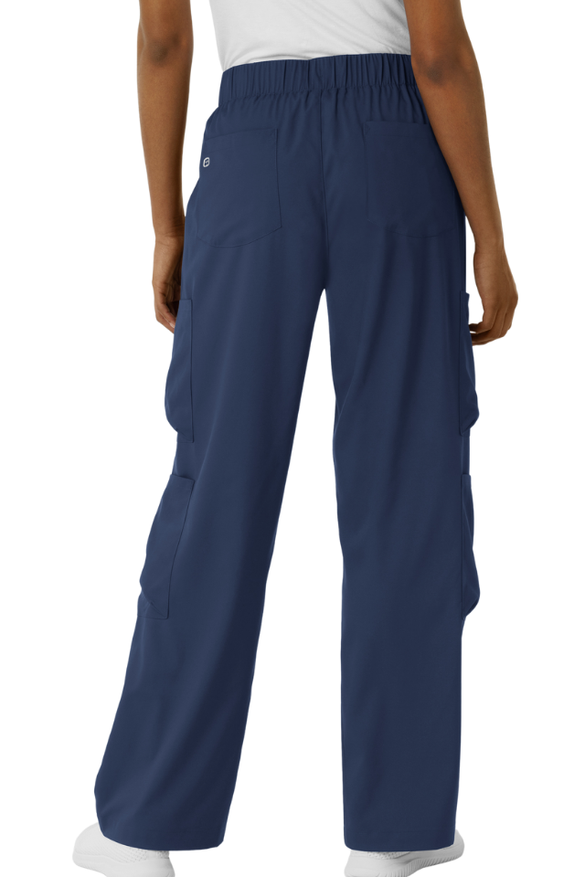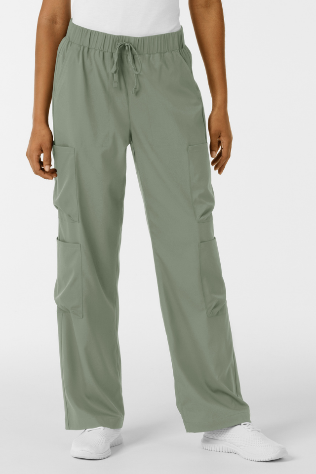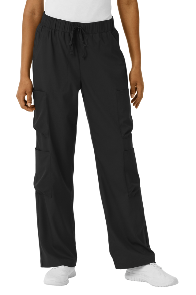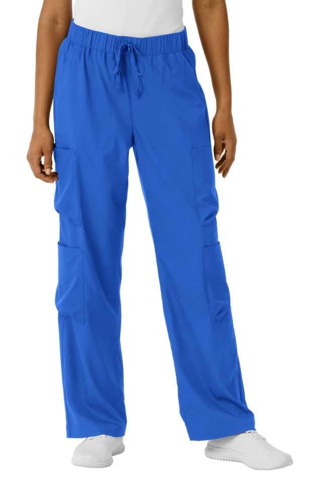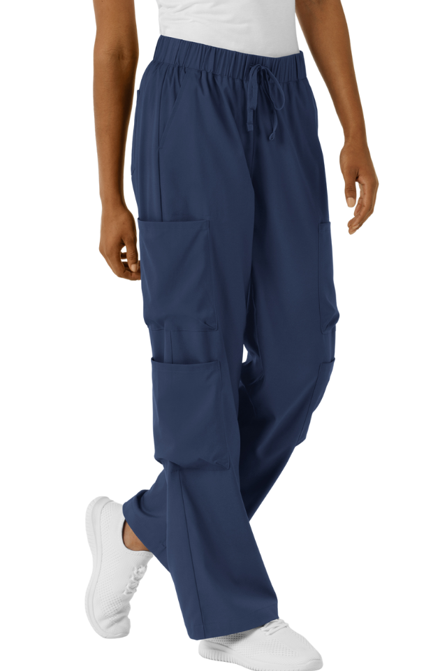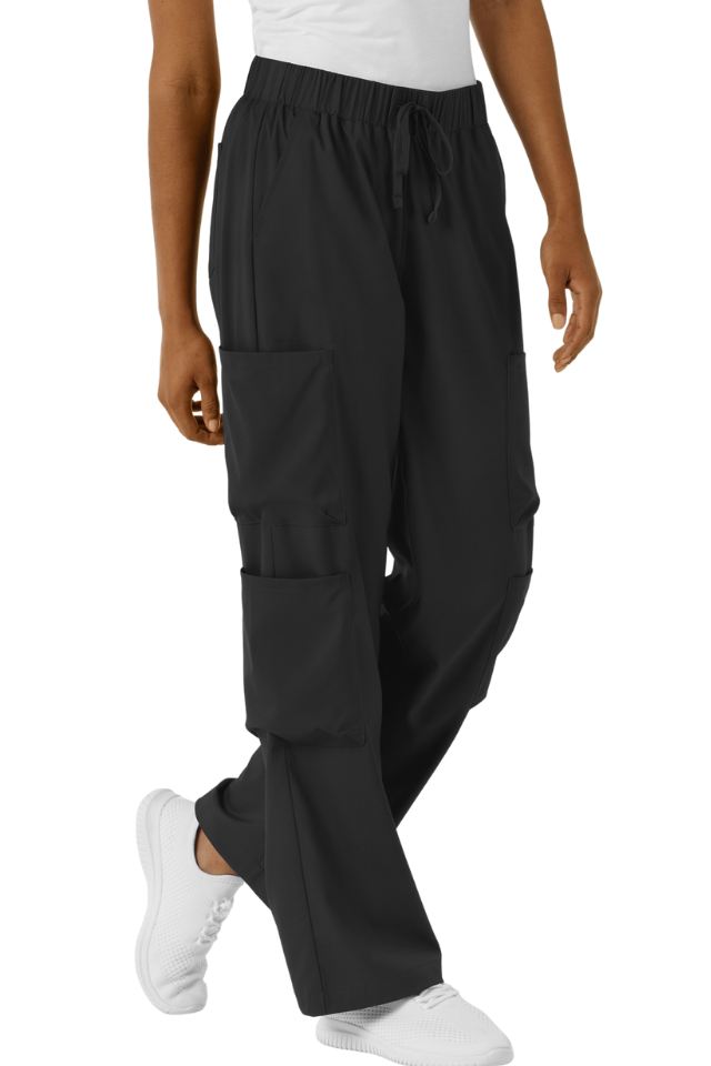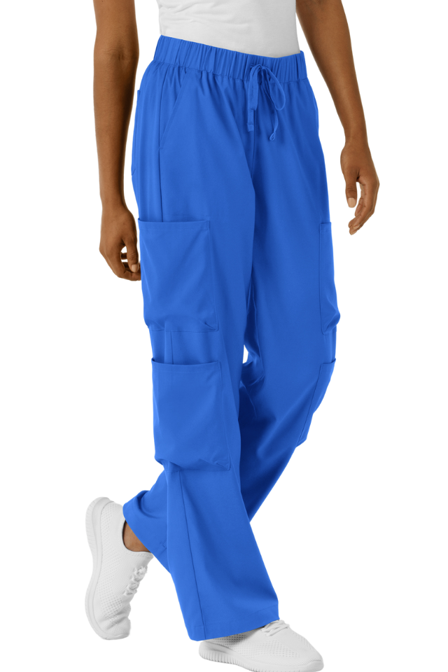 Boundless Wide Leg Cargo Pants combine professional functionality with contemporary style. Featuring a flattering wide-leg silhouette, these women's scrubs offer the modern aesthetic you want without sacrificing practicality. Six strategically placed pockets—including four cargo pockets, front slants, and back storage—keep your essential tools and personal items within reach throughout your shift. The soft, stretchy fabric moves with you while maintaining comfort against your skin. An adjustable drawstring waist ensures a customized fit that works for your body, shift after shift.