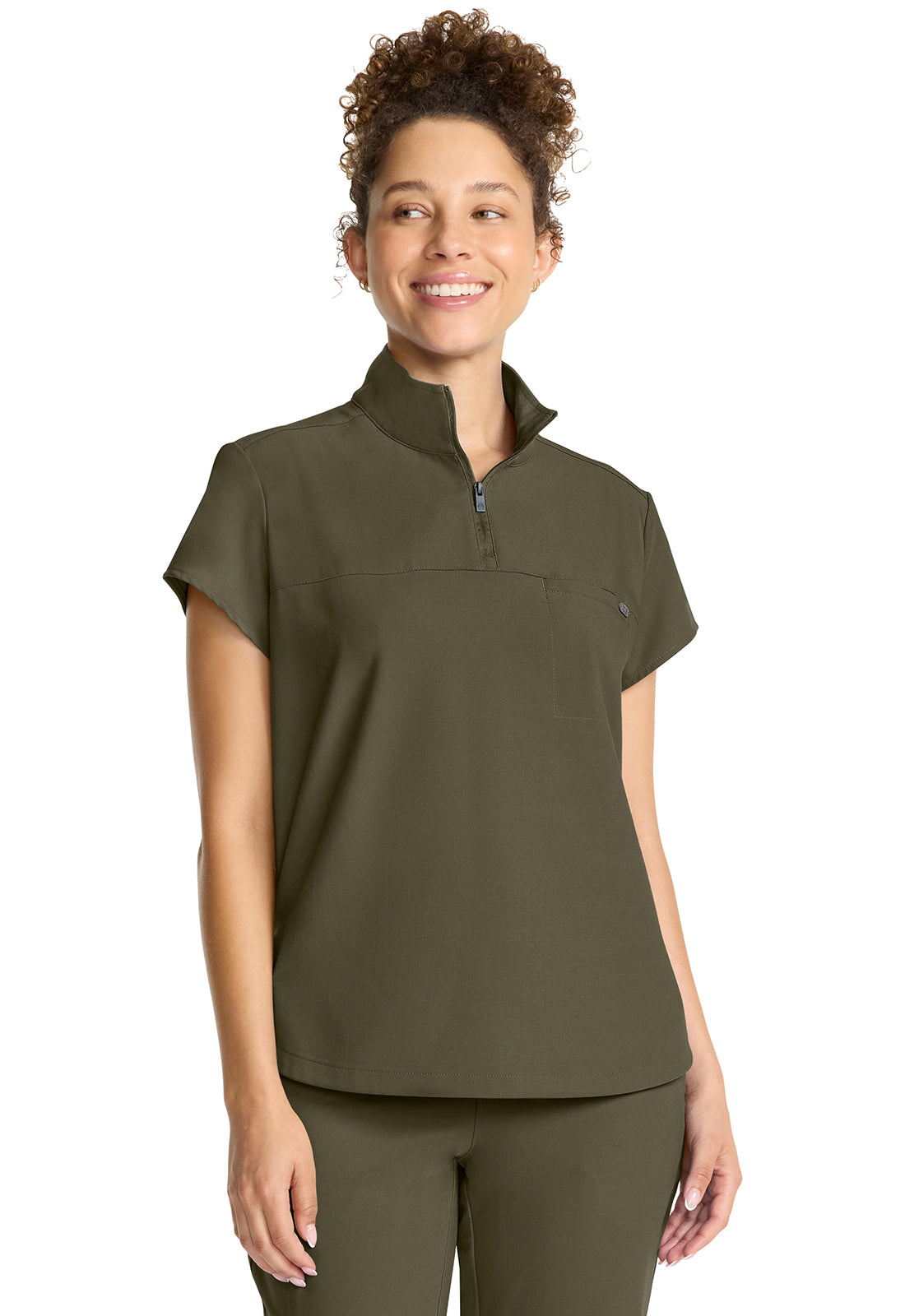 The Quest Stand Collar Top from the HH QUEST collection combines modern style with practical features. This top offers a stand-up collar and a partial zip front with a logo zipper pull for easy wear. Its single welt chest pocket features a printed pocket bag, complemented by stylized seams and a curved back yoke for a tailored look. Crafted from soft four-way stretch fabric with moisture-wicking properties, it ensures comfort throughout your shift. The updated shirttail hem and side vents enhance fit and mobility, making it an ideal choice for professionals seeking both function and style.